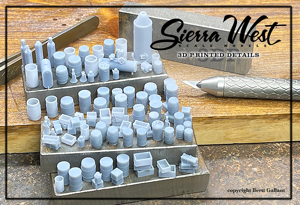 Since 1995, SierraWest Scale Models has been the undisputed leader the world over in hand-poured resin and white metal detail castings. With emerging 3D Printing technology, SierraWest continues this tradition of unparalleled dedication to quality and innovation. Utilizing custom high-strength tooling resin, SWSM 3D Printed detail parts are very durable and easily handled. Supports are removed here in the shop so you can enjoy the painting and weathering process. Replacement parts are sent fast and free if you damage or lose a part. A small shipping and packaging fee may be added to cover costs. Be sure to check back often for the addition of new details.